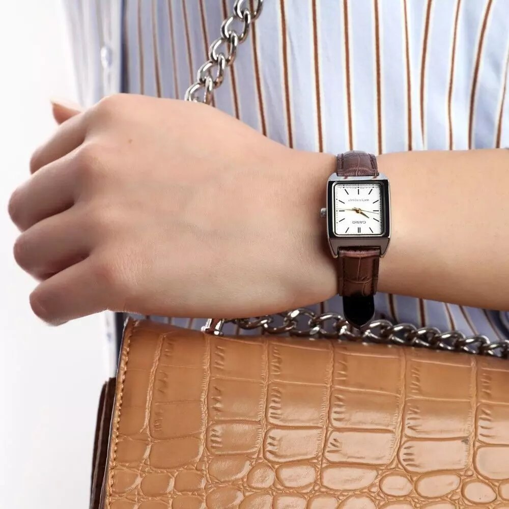 در دنیای ساعتهای زنانه، مدلهایی هستند که با یک نگاه، حس وقار، ظرافت و اصالت را منتقل میکنند. Casio LTP-V007L-7E2UDF دقیقاً یکی از همین مدلهاست—ساعتی که با طراحی مربعی کلاسیک، صفحهی سفید با اعداد رومی، بند چرمی قهوهای و قاب نقرهای براق، ترکیبیست از زیبایی جاودانه و کیفیت بینظیر. این مدل، همزمان ساده و شیک است، همجاپوش و همیشهمد—ساعتی که هیچگاه تکراری نمیشود و همیشه در اوج جذابیت باقی میماند.