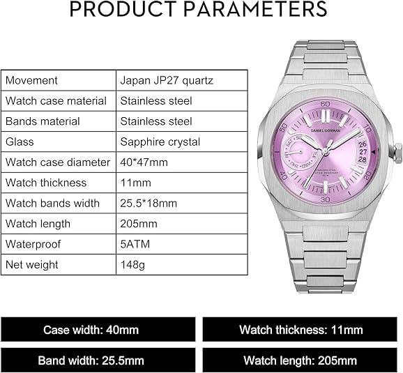 در دنیای ساعت‌های مردانه، گاهی یک طراحی خاص می‌تواند همه‌چیز را تغییر دهد. ساعت مچی مردانه Daniel Gorman مدل DG0916.SP دقیقاً همان نقطه‌ی تمایز است—ساعتی که با رنگ صفحه صورتی یاسی، طراحی اختصاصی و کیفیت ساخت بی‌نظیر، فراتر از یک ابزار زمان‌سنجی ظاهر می‌شود و به نمادی از سبک، شخصیت و جسارت تبدیل می‌گردد.