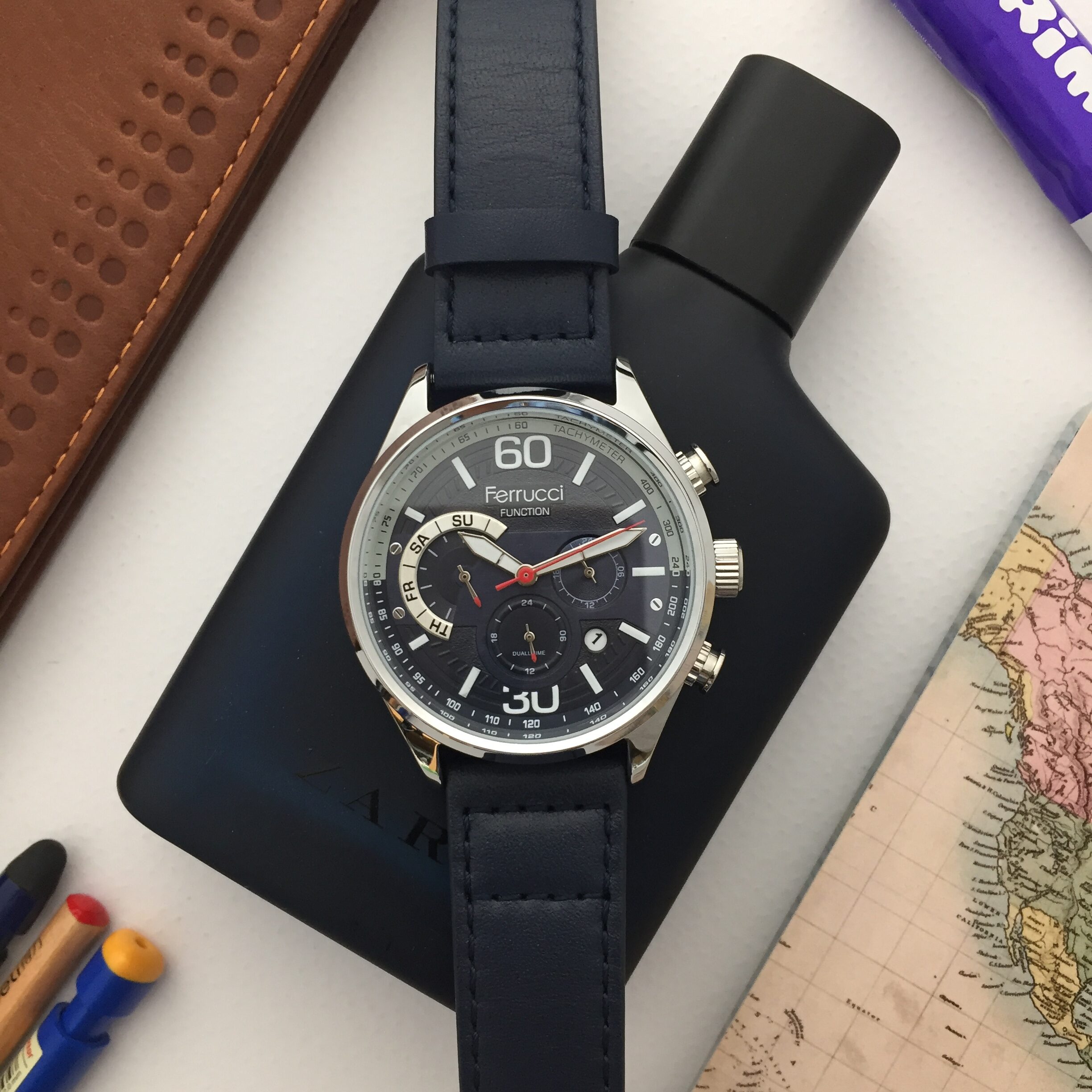 مدل FC03279 از برند Ferrucci با طراحی مدرن و جزئیات دقیق، جلوه‌ای خاص به مچ دست شما می‌بخشد. قاب استیل نقره‌ای، صفحه گرد با نمایشگر تاچیمتر و ترکیب رنگ‌های کلاسیک، این ساعت را به یک اثر هنری تبدیل کرده است. طراحی این مدل به‌قدری متوازن و زیباست که حتی در مقایسه با برندهای گران‌قیمت مانند تیسوت، سیتیزن یا سیکو، جلوه‌ای خاص‌تر و دلنشین‌تر دارد.
