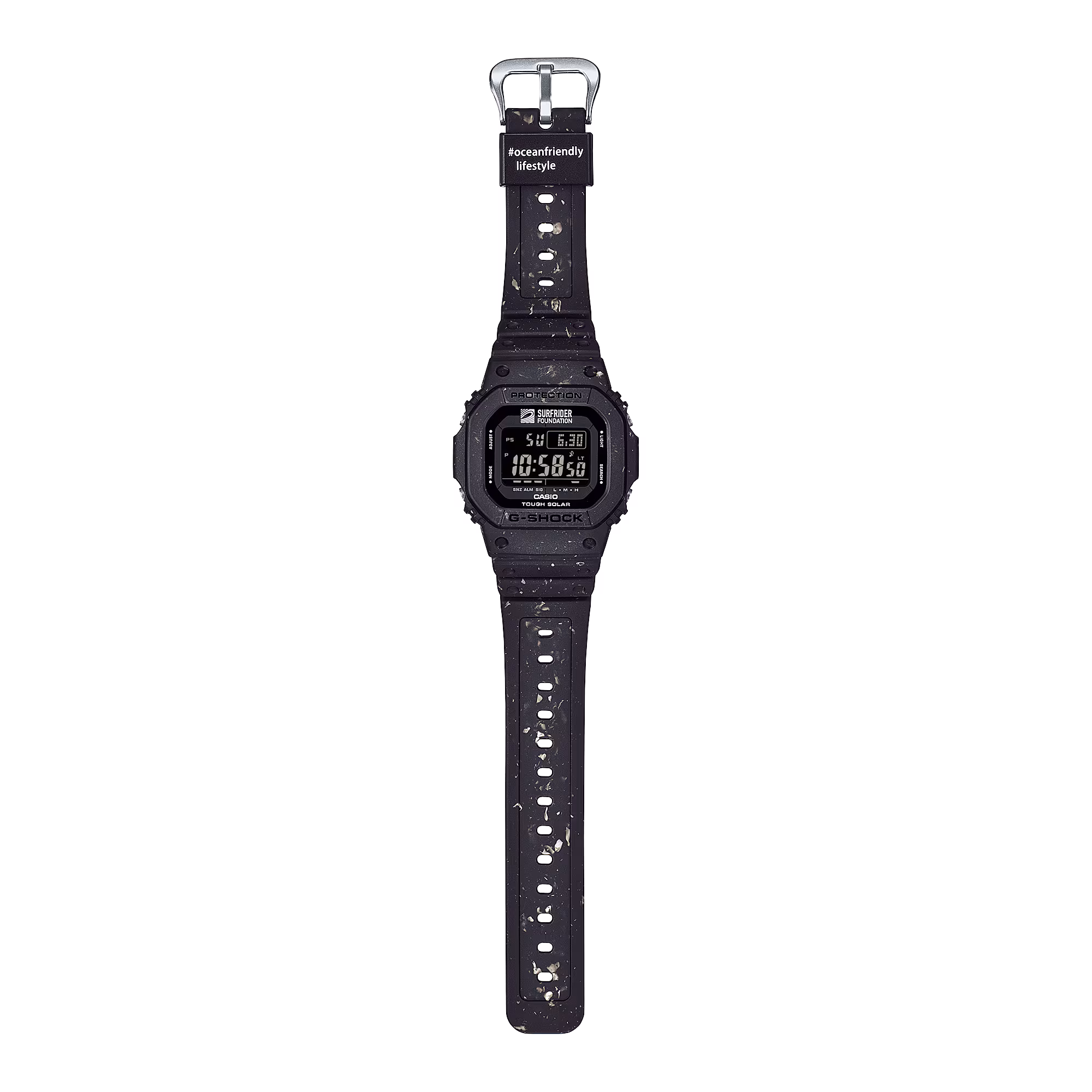یکی از ویژگی‌های منحصربه‌فرد G-5600SRF-1DR استفاده از رزین بازیافتی در ساخت بند و قاب آن است. این رزین از ضایعات سفید بازیافتی تهیه شده و با ترکیب در پایه‌ی مشکی، طرحی فلس‌مانند و منحصربه‌فرد ایجاد کرده که در هر ساعت متفاوت است.